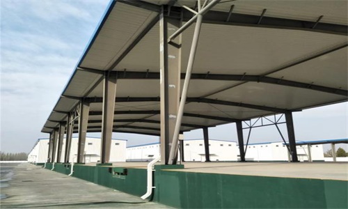 諸城棉花庫標準庫房(左)?和鋼罩棚(右)
