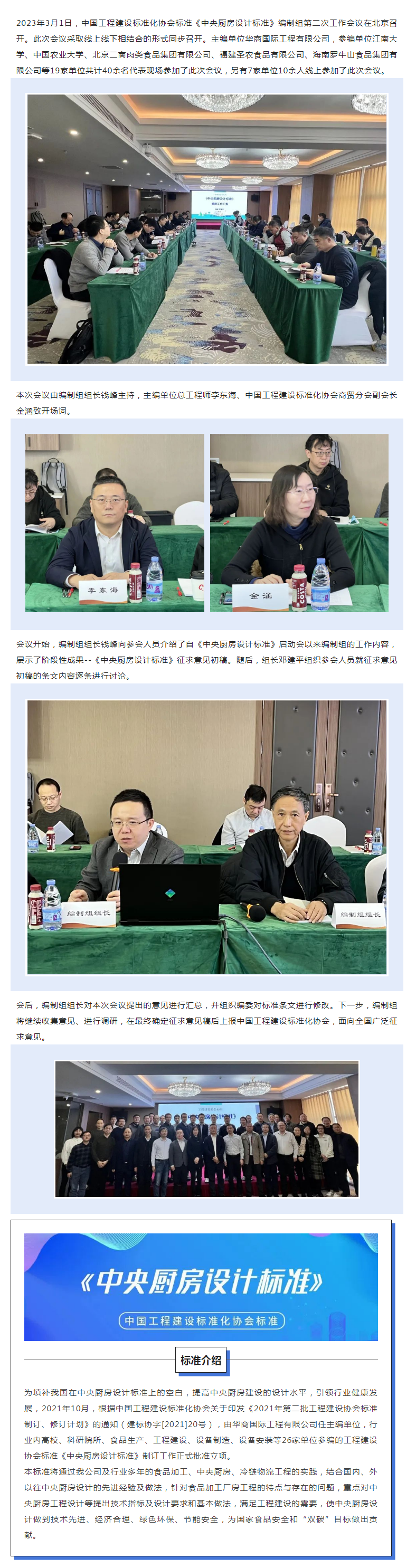 協(xié)會(huì)標(biāo)準(zhǔn)《中央廚房設(shè)計(jì)標(biāo)準(zhǔn)》編制組第二次工作會(huì)議順利召開