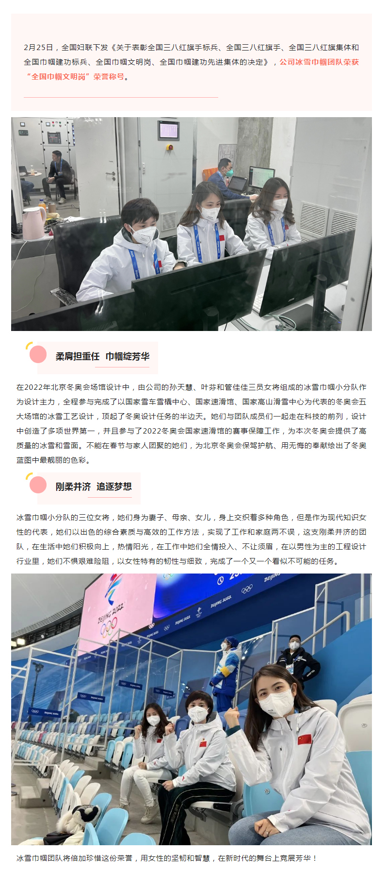 冰雪巾幗制冰造雪 | 她們榮獲“全國巾幗文明崗”